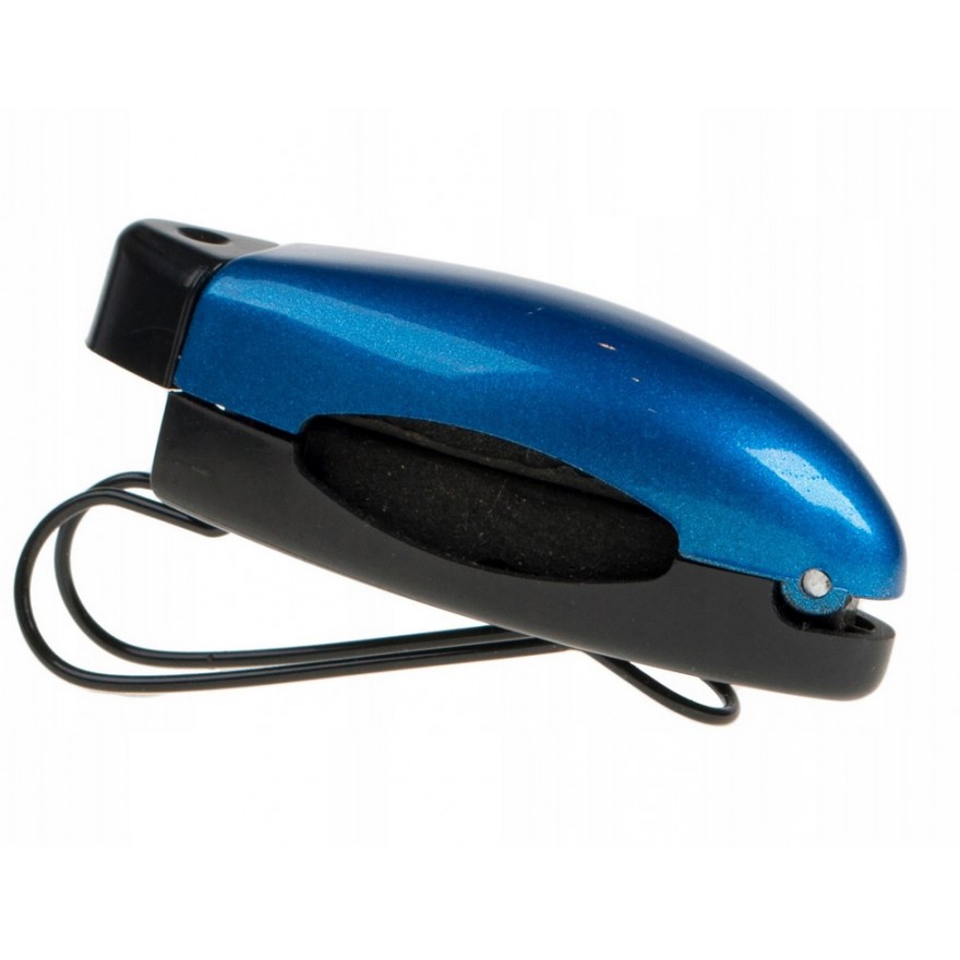 Samochodowy uchwyt na okulary. Wykonany z elastycznego plastiku, metalu oraz gąbki chroniącej okulary.