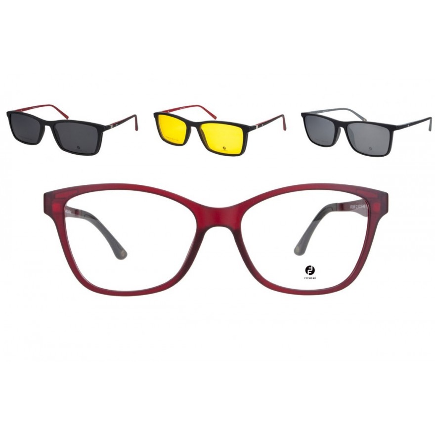 Oprawa okularowa do szkieł korekcyjnych wykonana z materiału -ULTEM(bardzo lekki i wytrzymały materiał z właściwościami hipoalergicznymi) w zestawie z 3 nakładkami typu Clip On. Nakładki mocowane na magnes do oprawki. Posiadające filtr UV400 oraz polaryzację. Nakładki w 3 różnych wersjach z powłokami: lustrzany niebieski, szary oraz Blueblocker